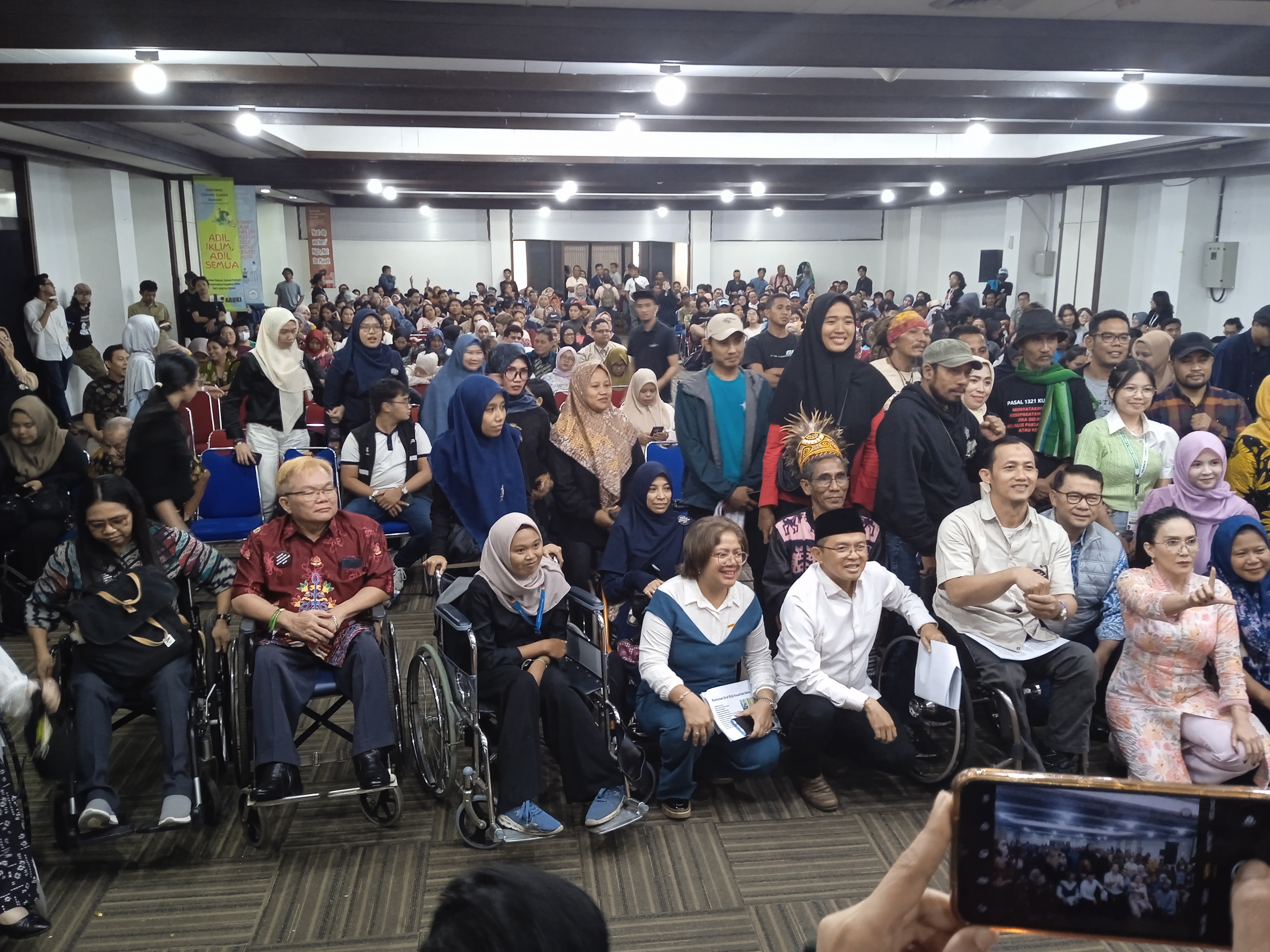 Pada dialog dengan DPD/DPR, delapan subjek terdampak—miskin kota, nelayan, petani, perempuan, disabilitas, buruh, orang muda, dan masyarakat adat—menyerahkan tuntutan spesifik; DPD menyatakan komitmen mendorong RUU Keadilan Iklim ke Prolegnas dengan tujuan adaptasi–mitigasi yang berkeadilan. Kesepakatannya jelas: negara wajib merelokasi anggaran secara spesifik untuk inklusi disabilitas, menulisnya eksplisit dalam RUU, RAN, NDC, dan laporan UNFCCC, serta memastikan perwakilan disabilitas hadir hingga COP30.